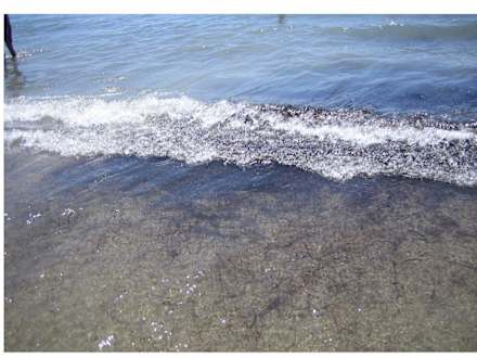 Das wasser ist schmutzig, genau wie der Strand.