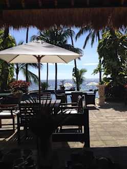 Blick vom Restaurant zum Pool/ Meer