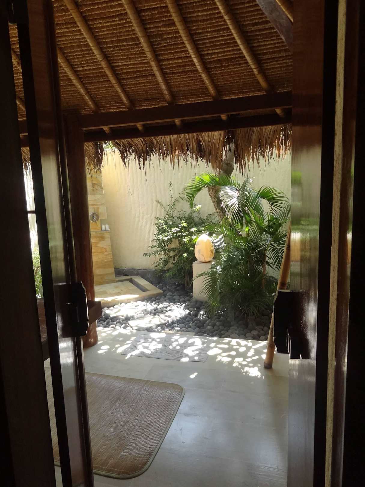 Blick ins hübsche Outdoorbadezimmer