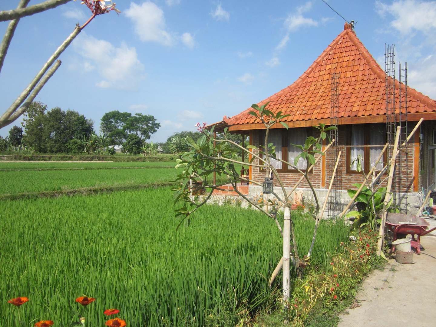 Bungalow aussen im Reisfeld