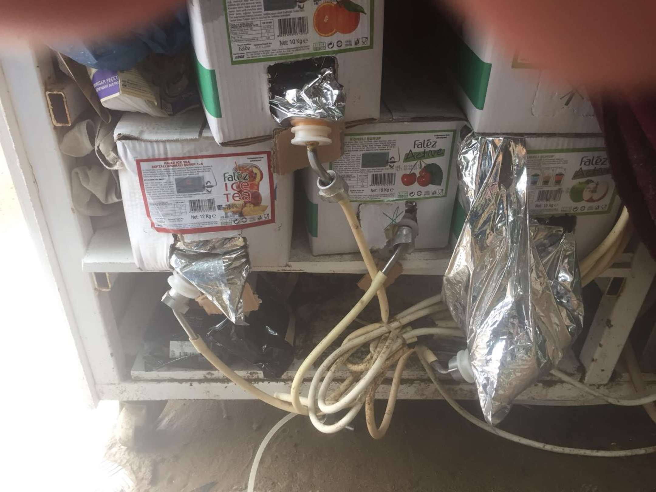 Getränke Anlage am Strand mit Leitungswasser und Saft Konzentrat.