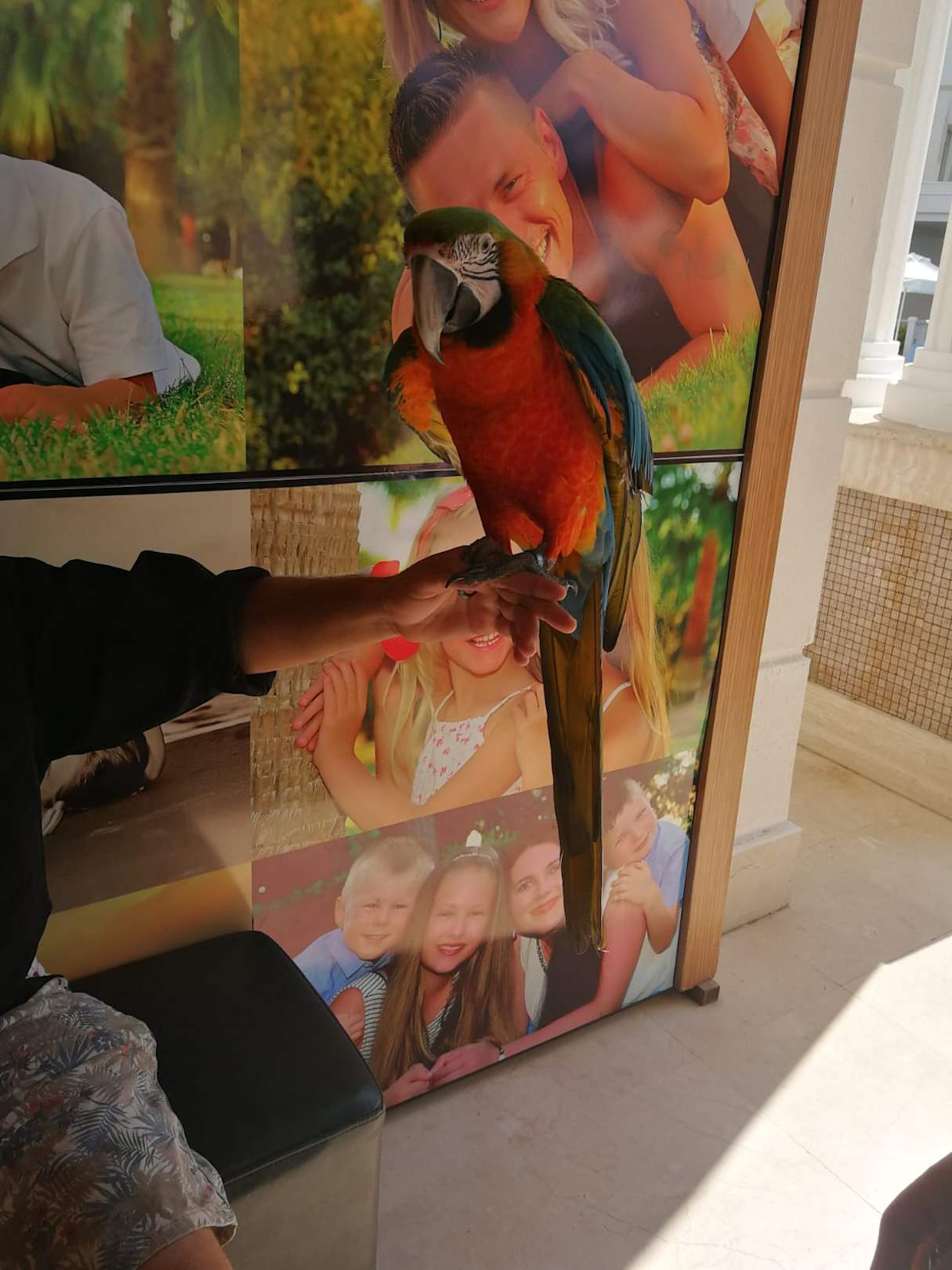 Ein Papagei war zu Besuch und man konnte Bilder mit ihm machen