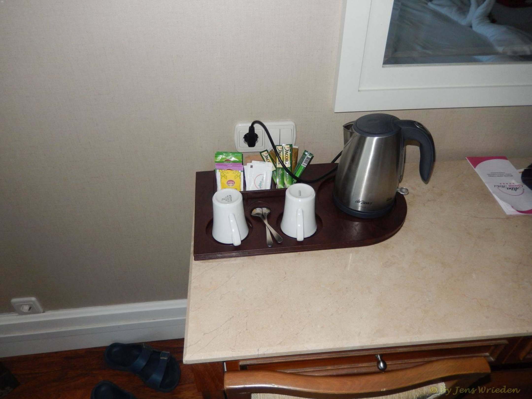 Zusätzlich zur Minibar gab es eine Auswahl von Teesorten und Schnellkaffee. Dieses Sortiment wurde täglich mit der Minibar wieder aufgefüllt.
