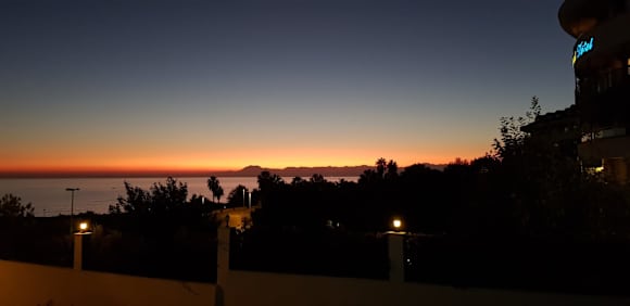 Von der Terrasse aus kann man Sonnenuntergang genießen