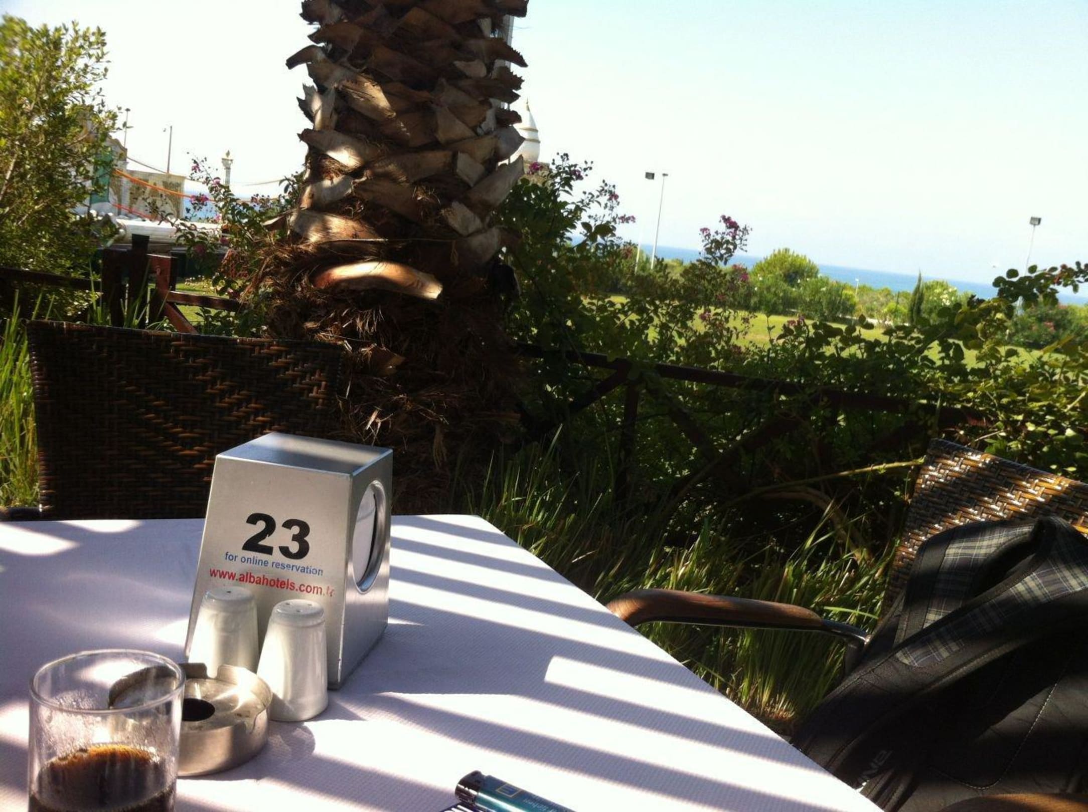 Die Poolbar hat ein gepflegtes Ambiente. Service ist vorhanden. Getränke werden in Gläsern ausgeschenkt. Die Palmen und der Blick auf das Meer sind sehr schön.