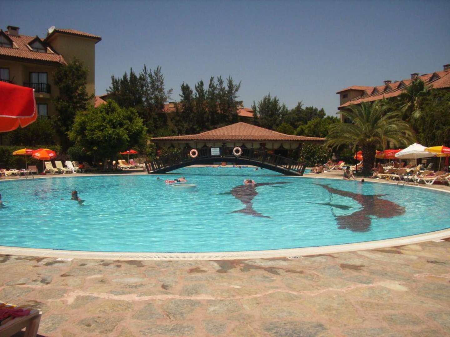 Pool, dahinter das Pool-Restaurant
