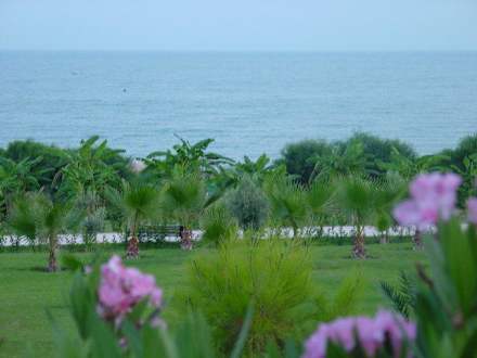 Sicht von der Gartenanlage aufs Meer