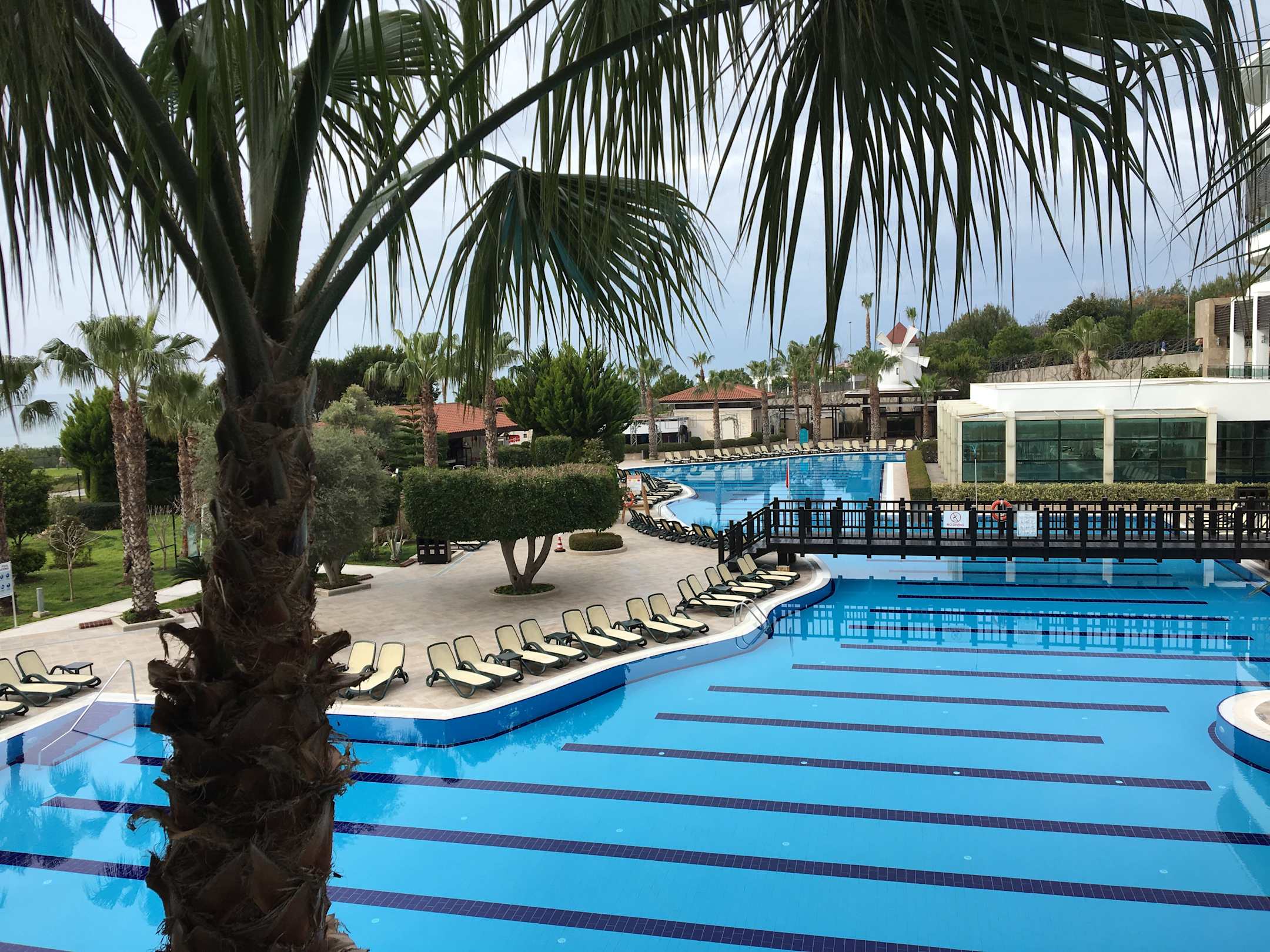 Blick auf dem Pool vom Hauptrestaurant