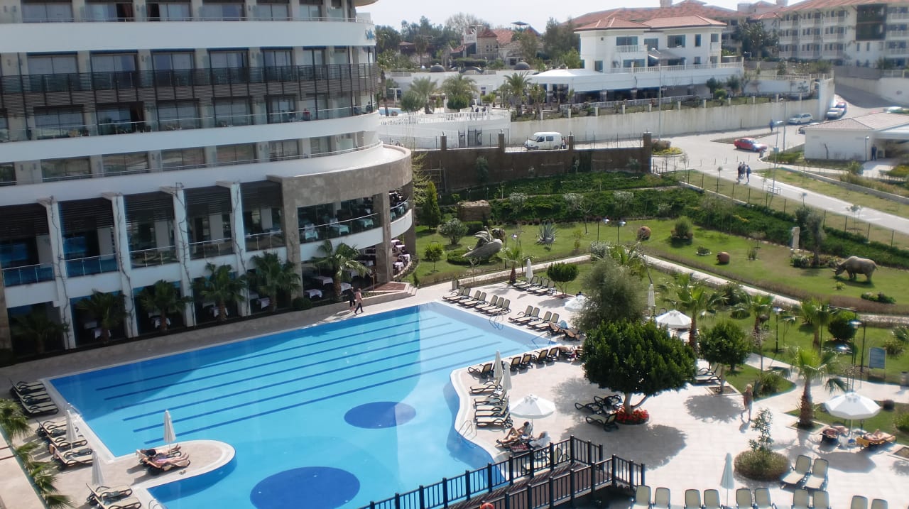 Blick von Zimmer 1323 auf Poollandschaft