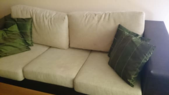 Das Sofa fiel in der Mitte zusammen. Kaputtes Sofa