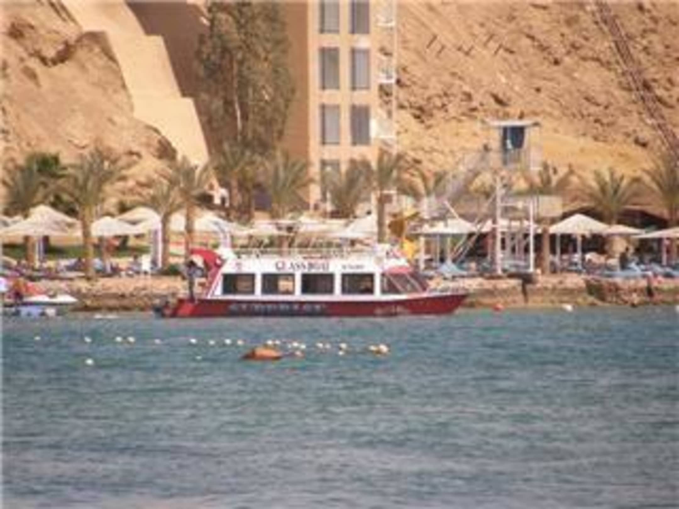 Der Strand des Albatros Sharm vom Wasser aus gesehen.