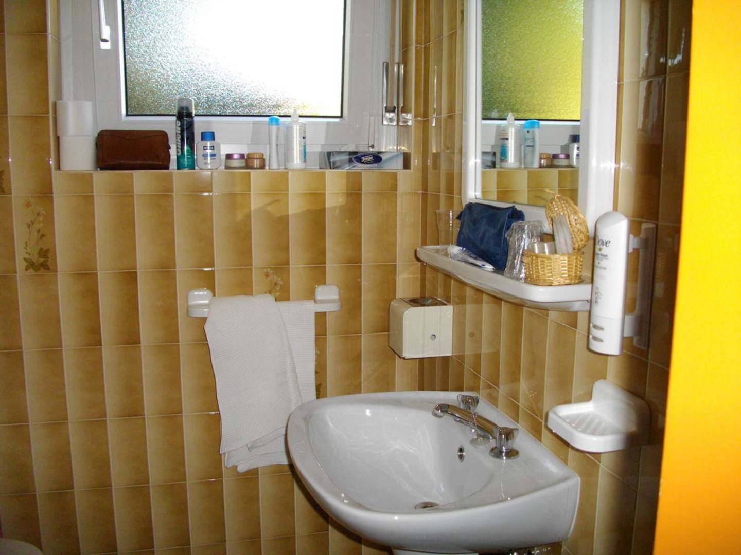 Sauber und funktionell: Das Bad.Schöne Dusche und was man sonst so braucht - dazu Vogelgezwitscher aus dem Garten.
