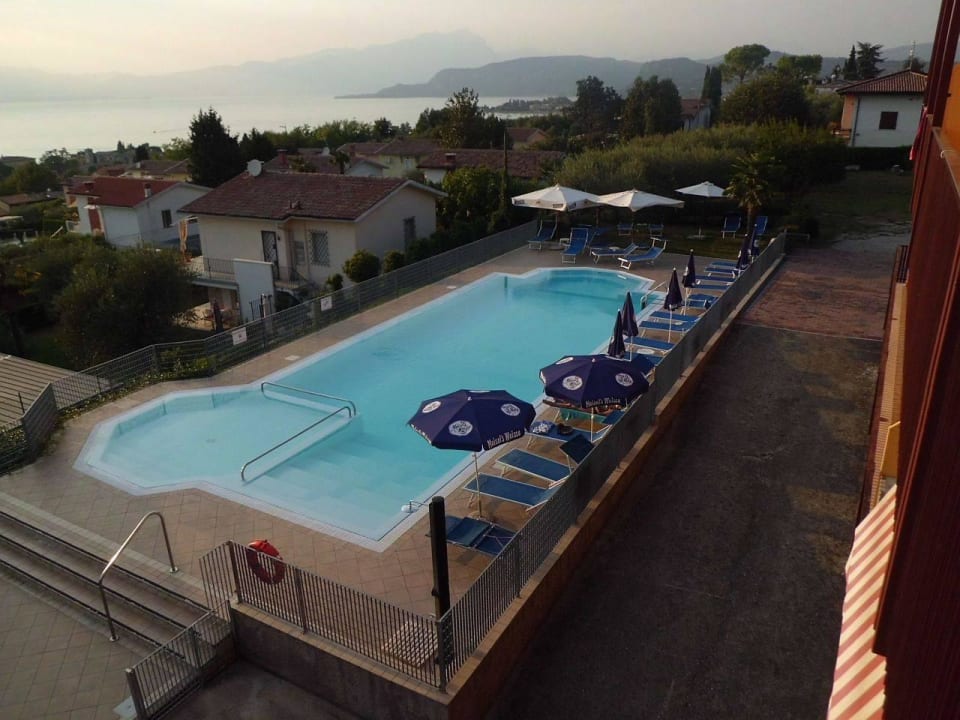 Großer aber kalter Pool mit Liegen