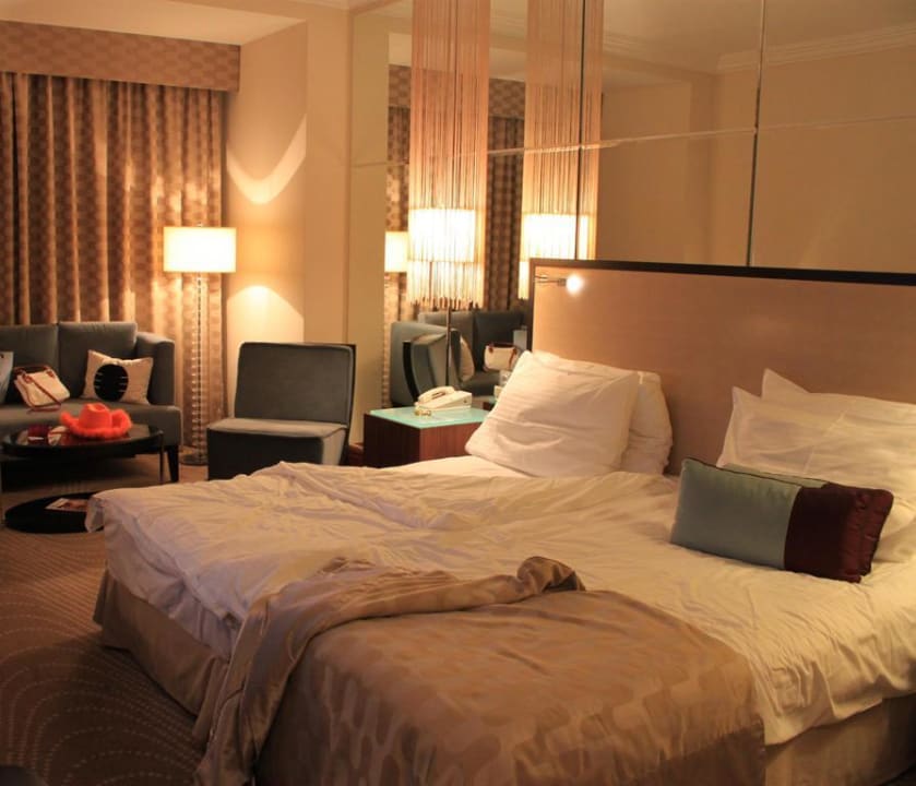 СпальняКровать стоит в центре номера, по обеим сторонам тумбочки, в изголовье сверху весят бра. Ближе к окну стоит торшер, кресло, диван, вдоль всей стены сзади кровати протягивается зеркало,ооочень впечатлило))) Напротив кровати - ТВ -плазма, диаг.37-40"
