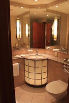 Ванная комната /ТуалетНе большая, но просторная, вдвоем вполне можно уместиться, на столы влезет куча косметики, ванных принадлежностей,слева находится ванна с душем(к сожалению в кадр не попала)в ней также есть полочки, отделение с выдвижной веревочкой для сушки белья