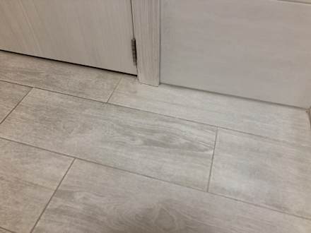 Hinter der Tür sauber, Rest des Bodens stand vor Schmutz