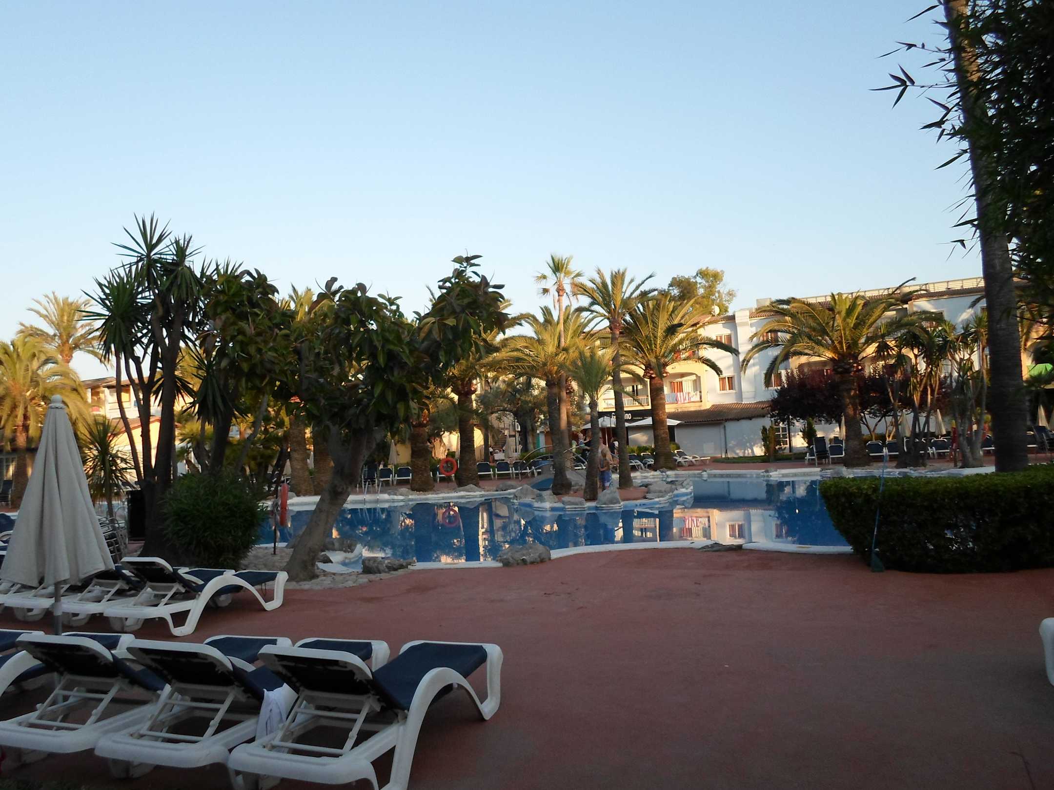 saubere gepflegte Poollandschaft mit ausreichend Platz zum plantschen. so angelegt das es im Wasser sogar Schatten gibt. Leider belegen die Gäste am Abend schon alle Liegen.