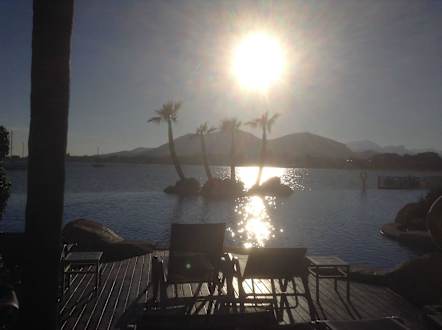 Blick auf den Pool und die Bucht