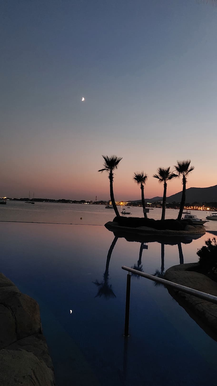 Pool mit Aussicht auf das Meer am Abend