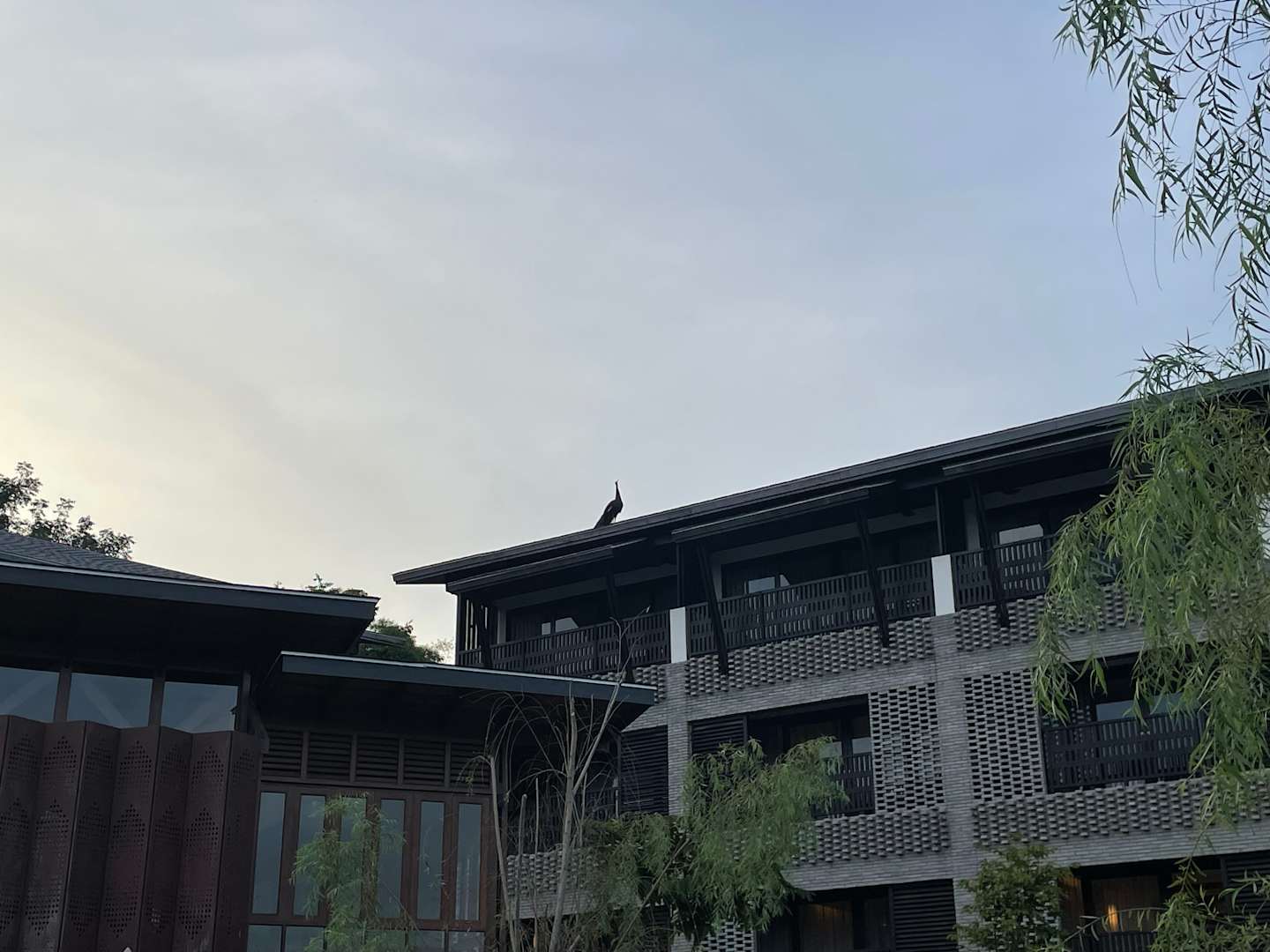 GartenanlageDer Pfau ist oft auf dem Dach zu sehen. Insgesamt gibt es 7 außerhalb der Anlage. Wenn man Glück hat, sieht man den ein oder anderen.