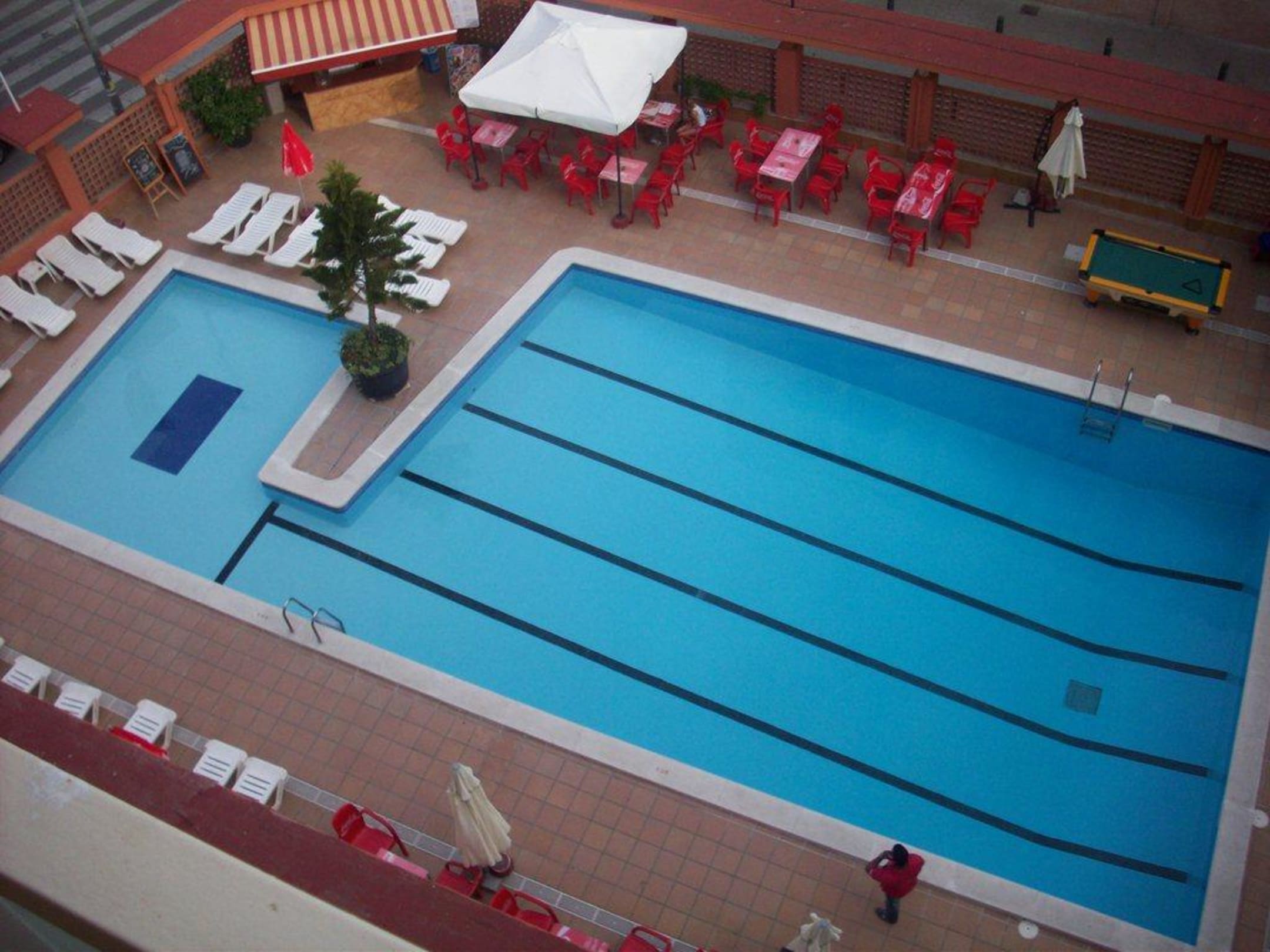 So sieht der Pool vom 4. Stockwerk aus!
