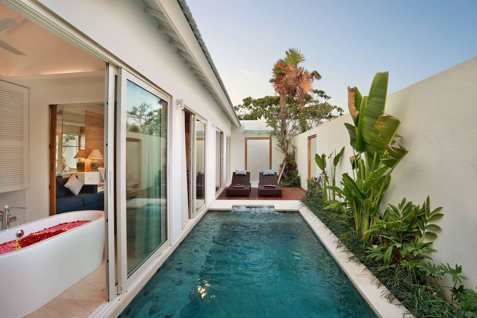 Swimming pool wiew to entrace villa gate.