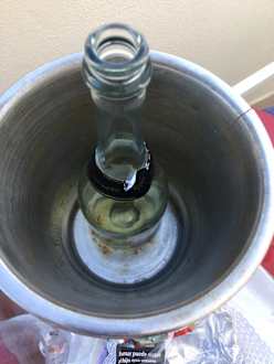 GastroGeschenk am letzten Abend vom Hotel. Der Sektkühler voller Rost und kaputt, der Sekt ungenießbar
