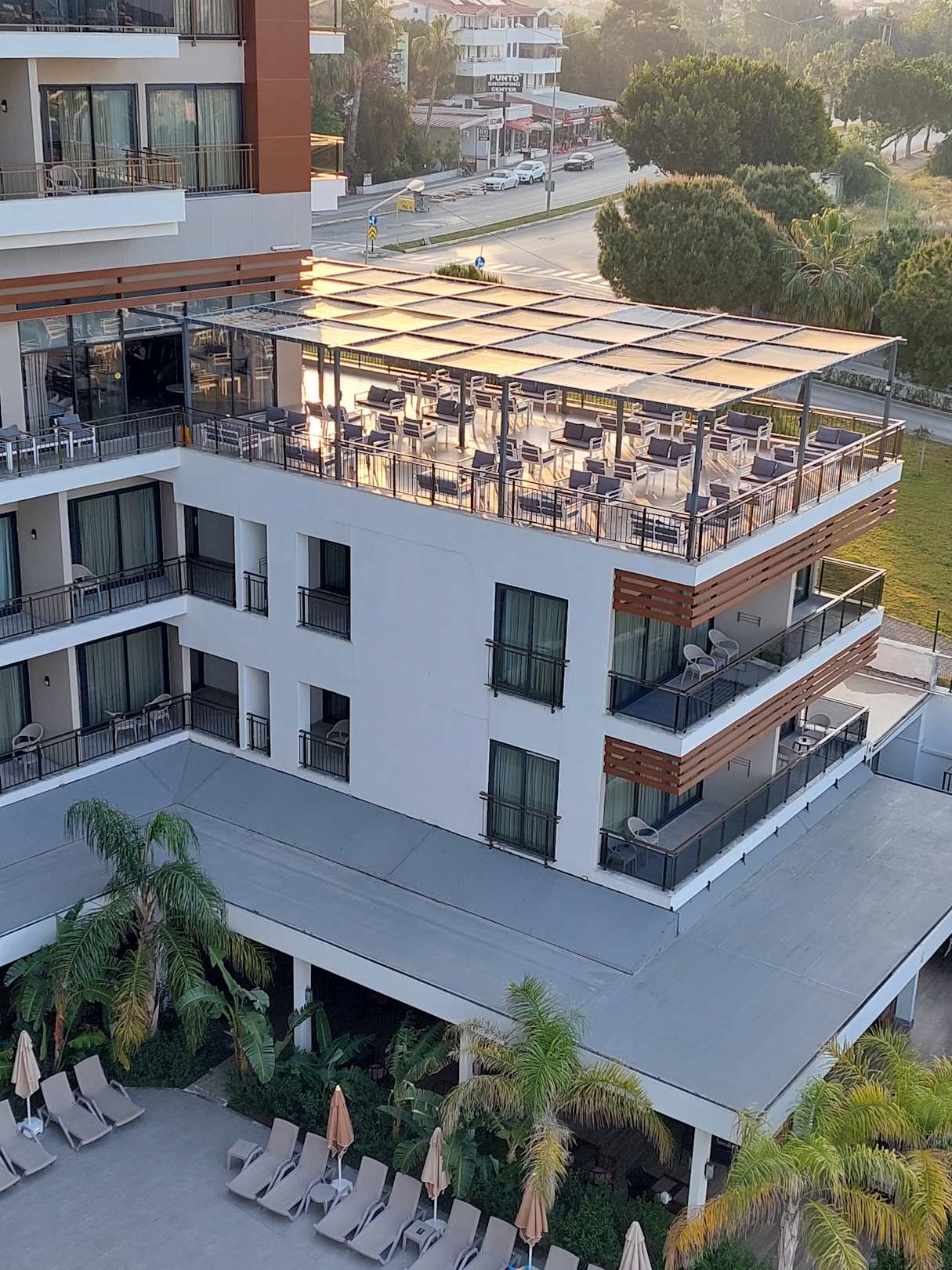 schöne große Dachterasse bei der Patisserie