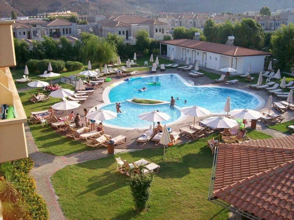 Poolanlage im Hintergrund Neubau von Hotels