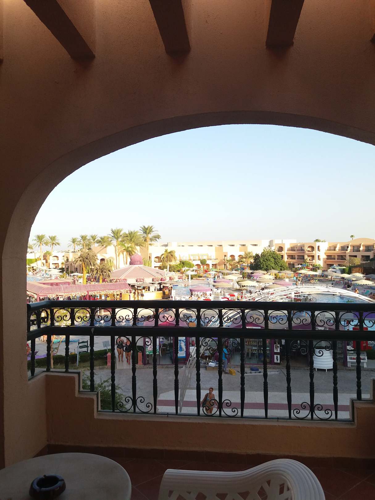 Ausblick vom Zimmer auf den Pool