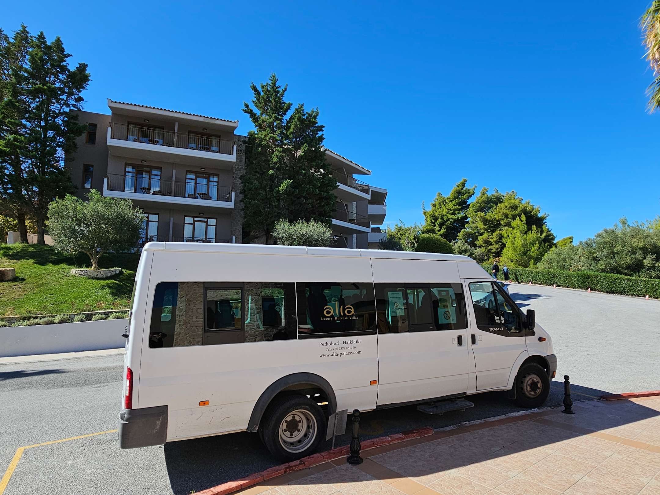 Shuttlebus von der Rezeption in den Ort Pefkochori