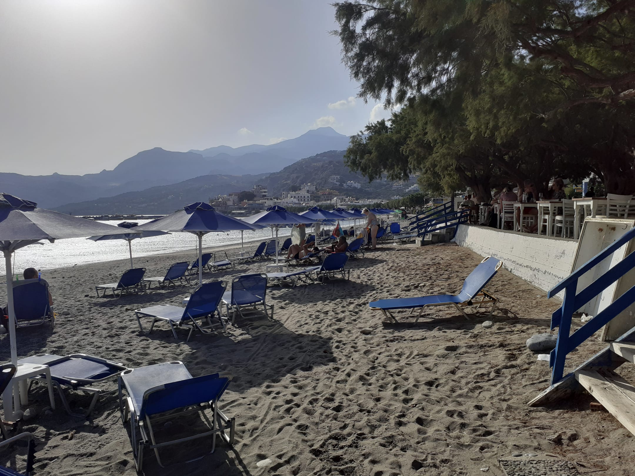 Liegen und Schirm für Hotelgäste zum Preis von 5,-Euro/Tag. Sonst 8,- Euro.