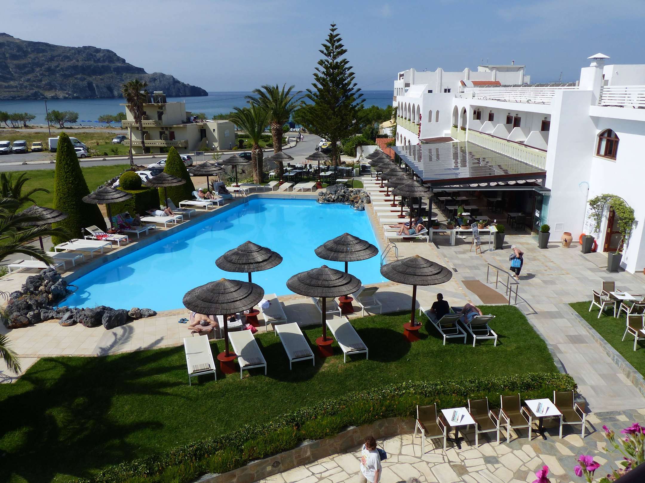 Pool mit Blick auf Restaurant