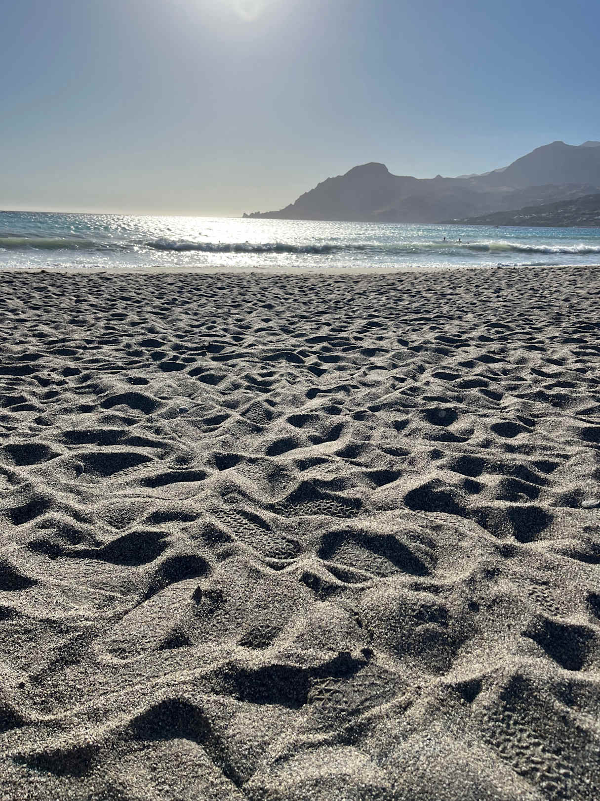 Plakias Beach, bei der Beach Bar Mes tin ammo (bei Konsumation können Liegen und Schirme gratis genutzt werden). Fußläufig ca. 10 - 15 Minuten vom Hotel entfernt.