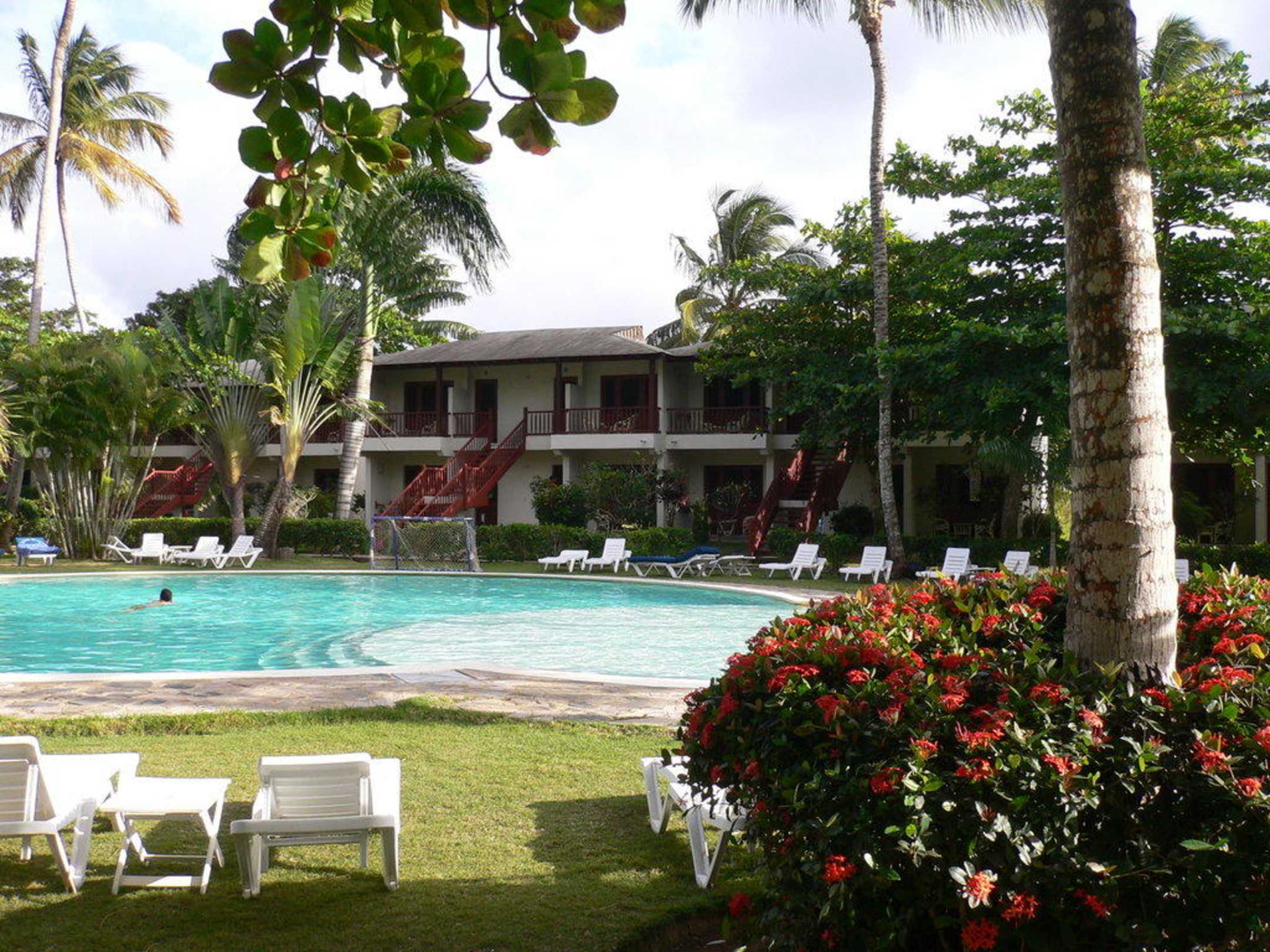 hinterer Pool mit Blick auf Bungalow