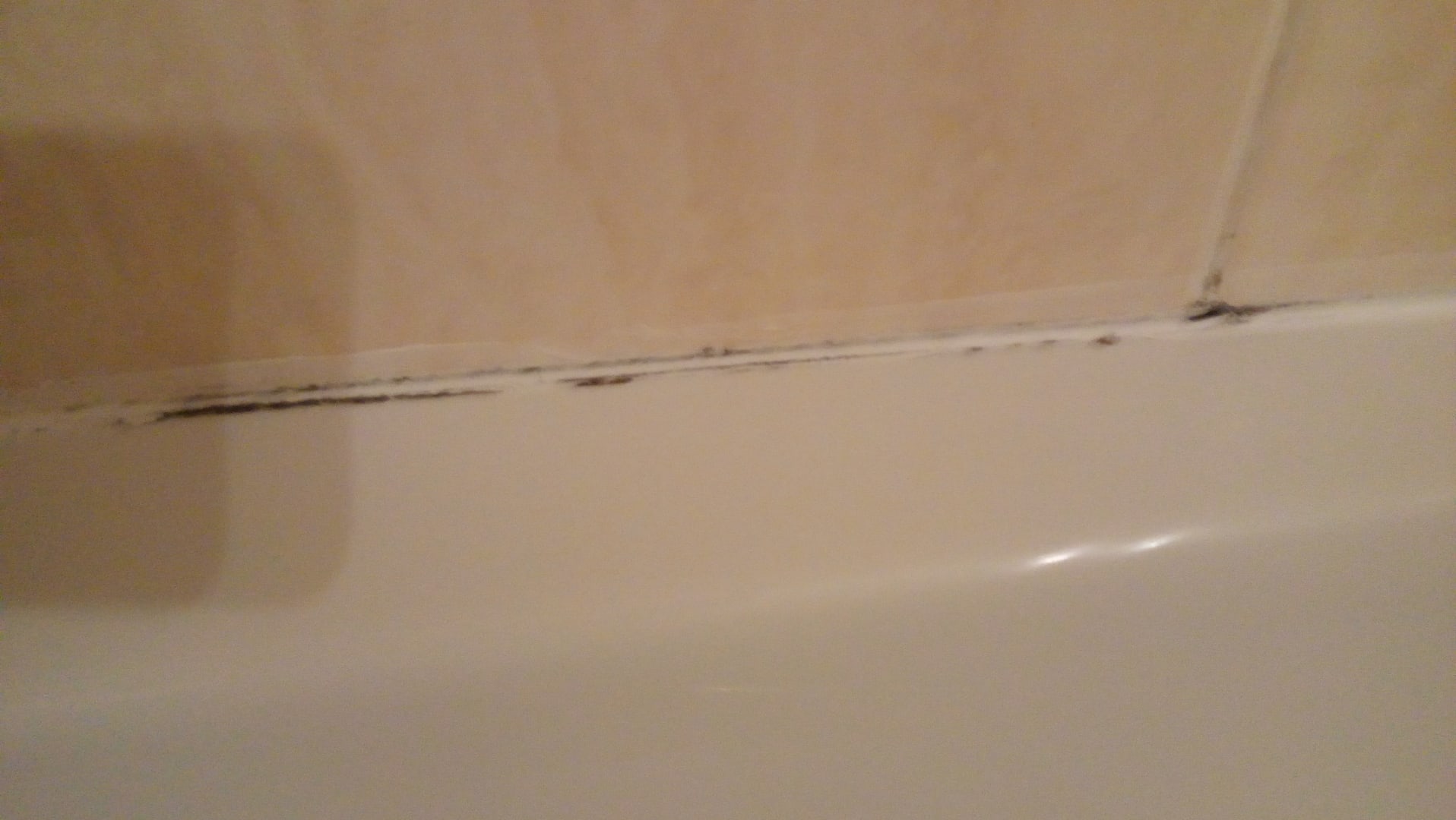 Bad. Zwischen Badewannenrand und Wandfliese.