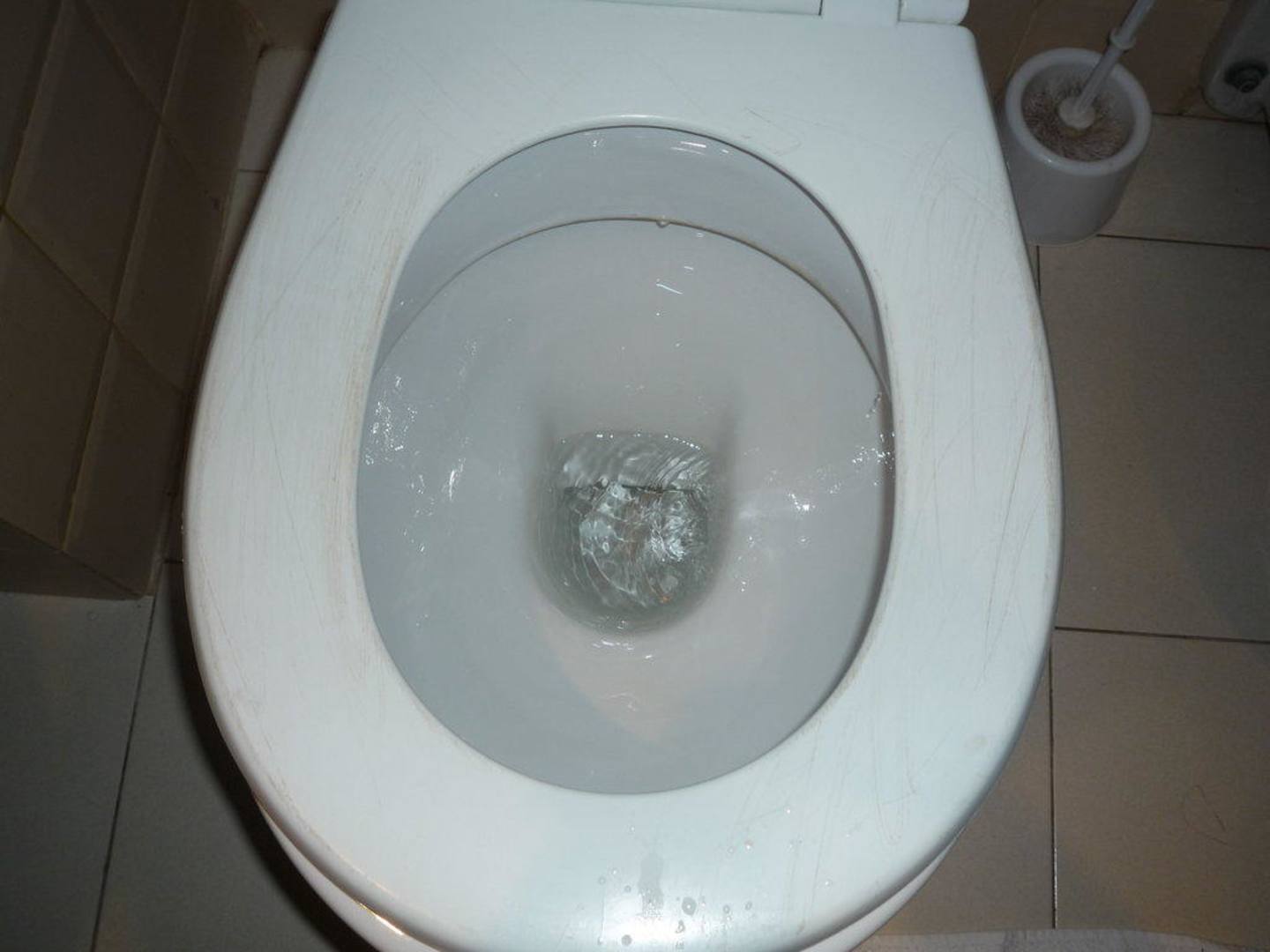 Völlig zerkratzte Klobrille