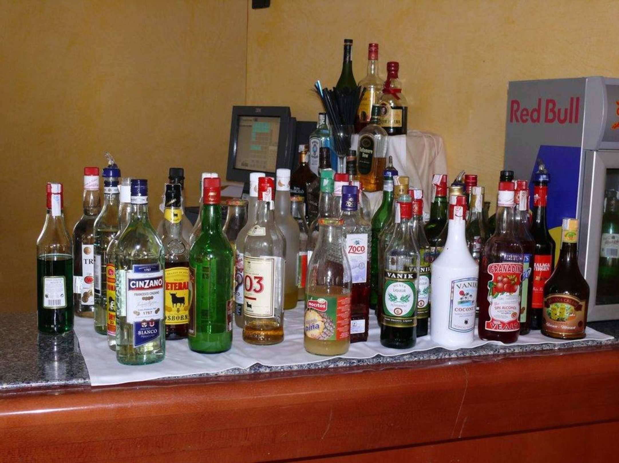 An der Bar und der Poolbar standen diverse alkoholische und nichtalkoholische Getränke in Flaschen zum selber Mixen zur Verfügung.