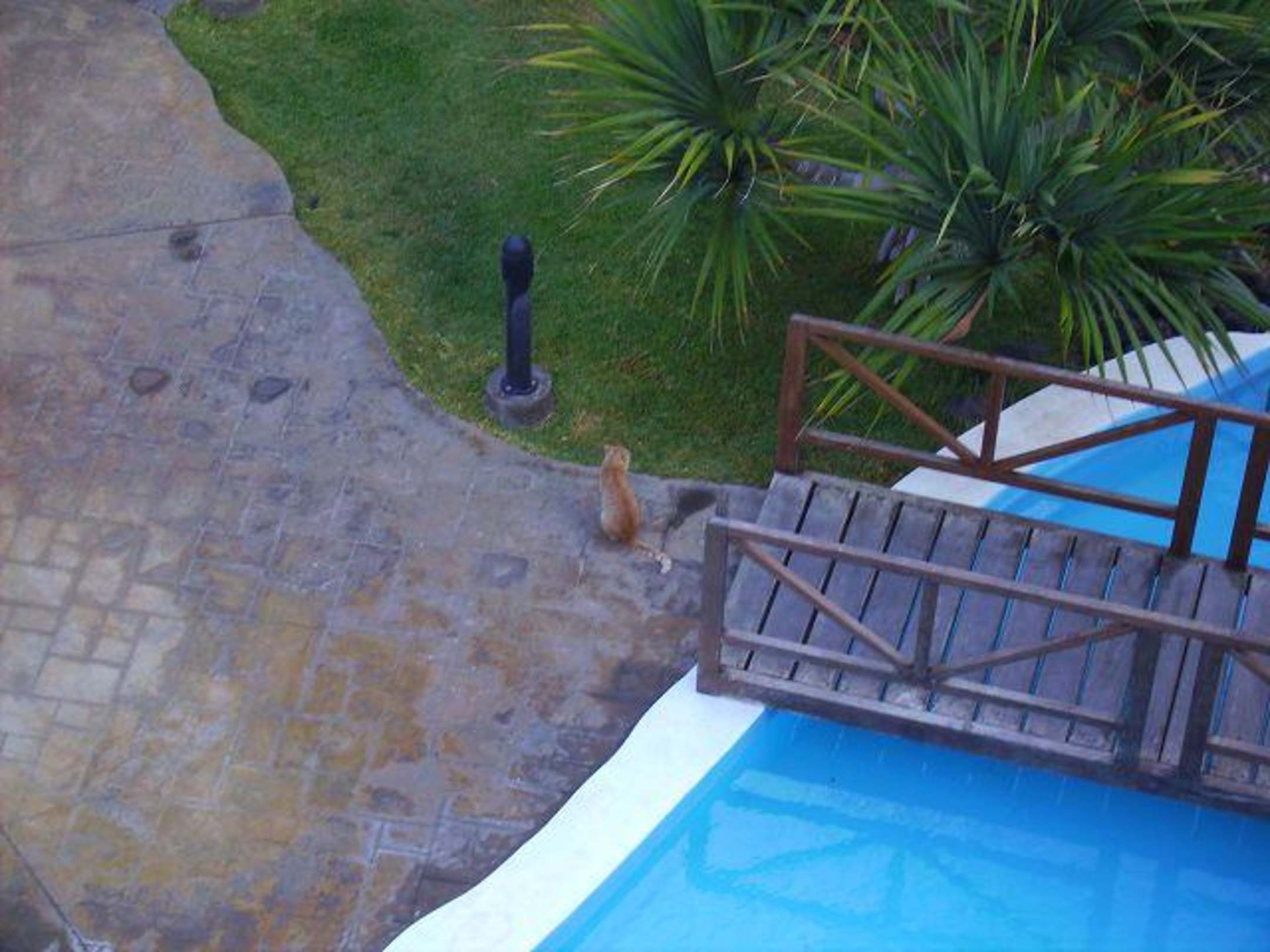 durstige Katze am Pool