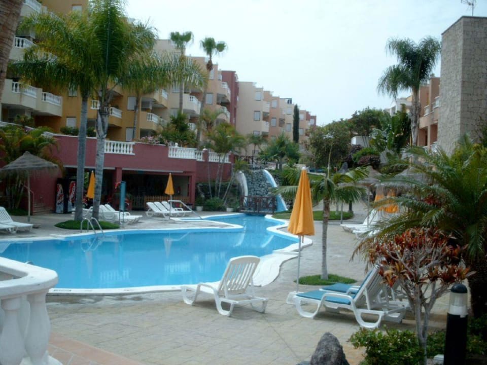 Ein Teil der Poolanlage und Innenhof des Hotels