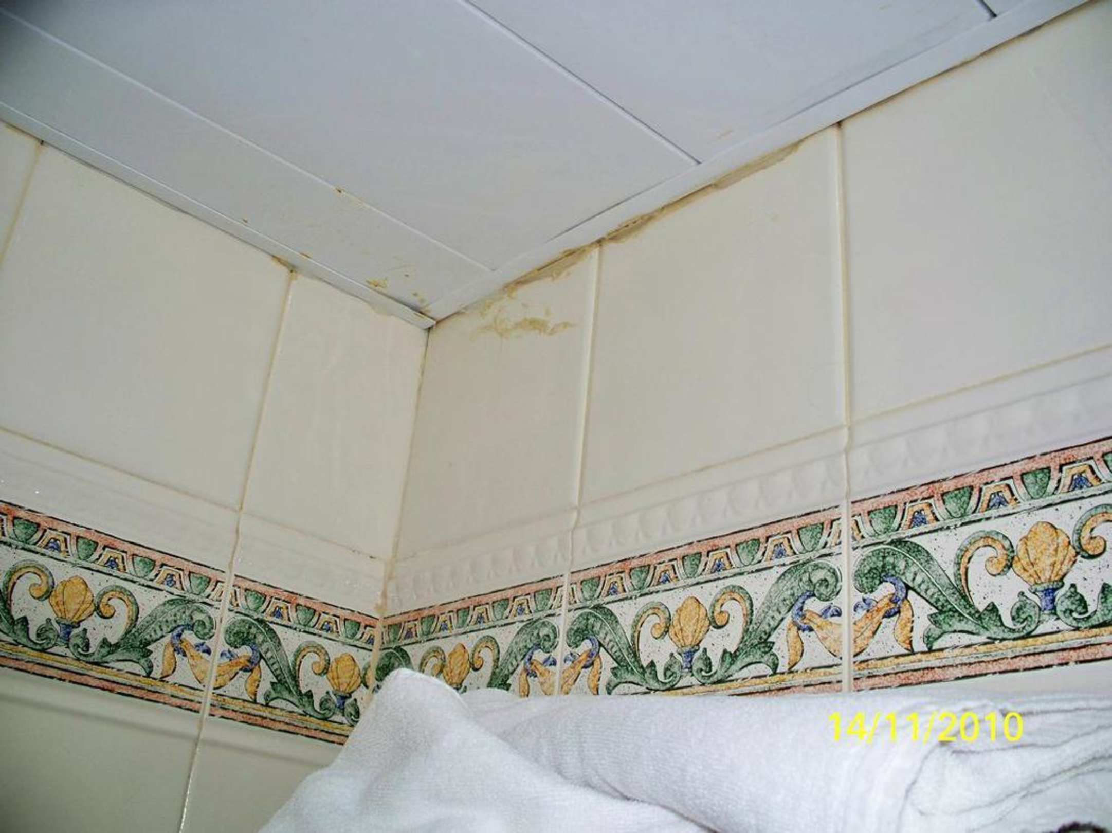 Badezimmerauch die Decke ist nicht im unmittelbaren Sichtfeld der Putzfrau, auch wenn die Handwerker vorher bei der Reparatur schon geschlampt haben