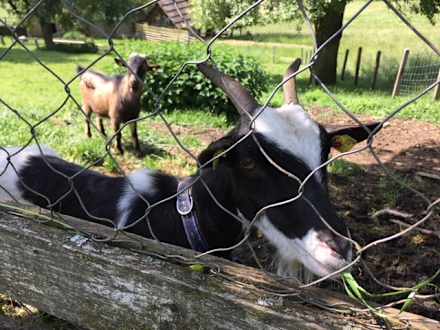 Es gibt zwei Ziegen und drei Schafe