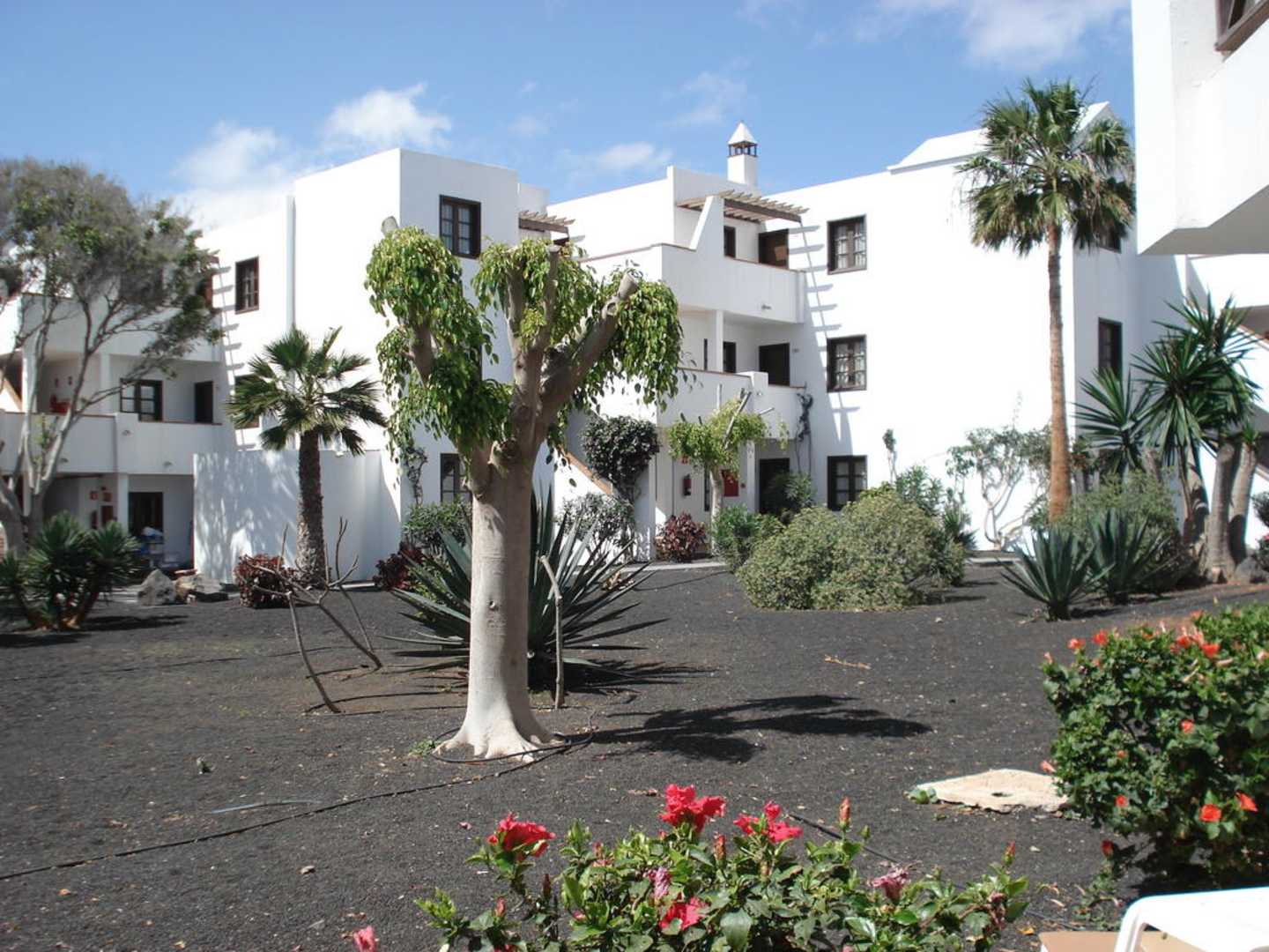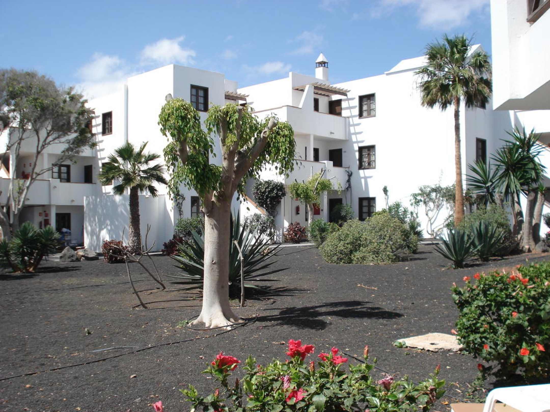 Blick auf Hotelzimmer und Gartenanlage