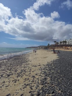 StrandBeschreibung Alltours: offene Badebucht mit Sandstrand (teilw. grosse und kleine Kieselsteine an der Wasserlinie)