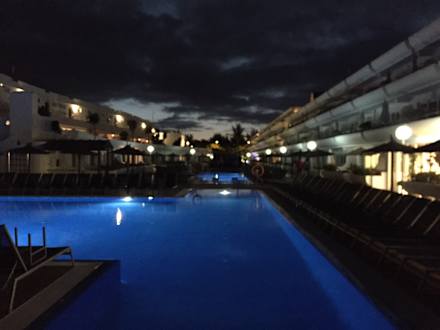 Poolanlage bei Nacht
