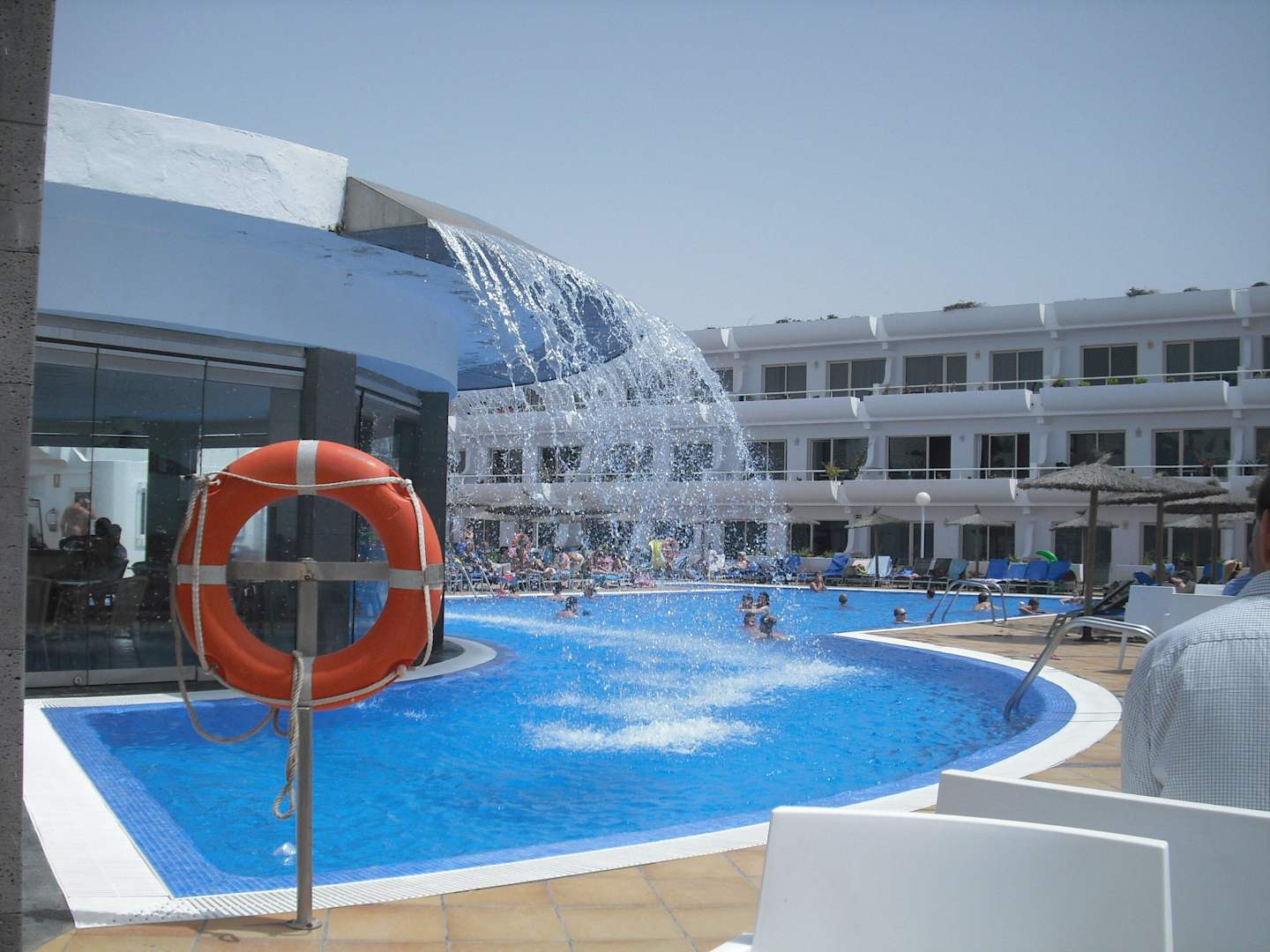 Blick vom Strand auf den Hotelpool