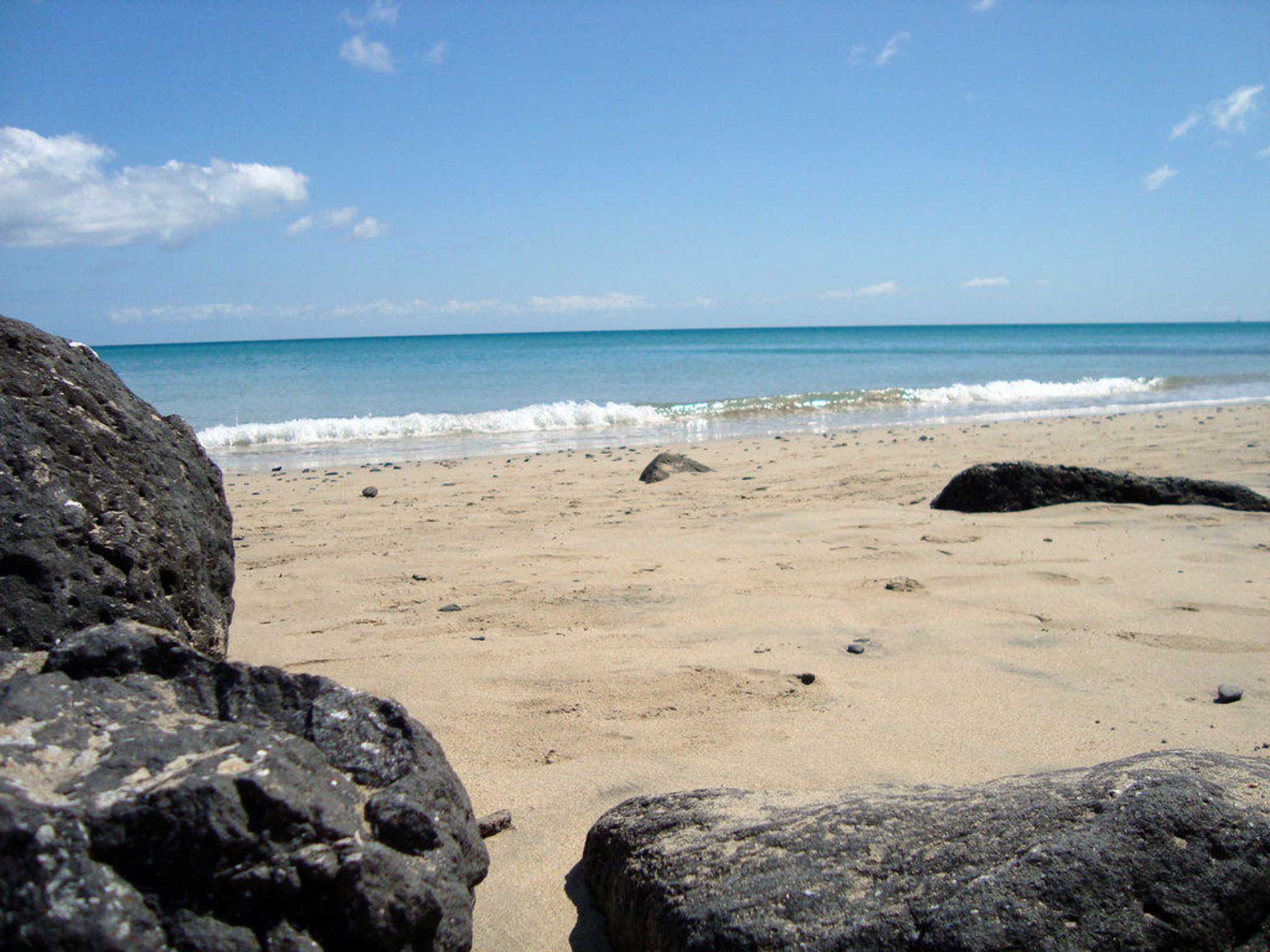 Blick auf das Meer - betrachtet von der Felswand an der Bucht aus