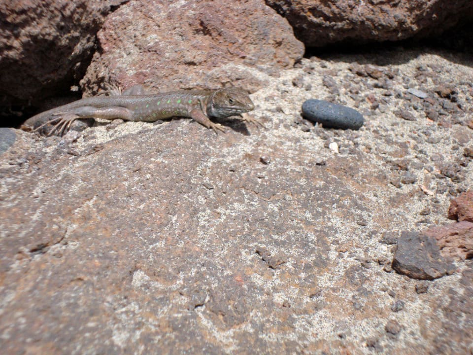 Wenn man Geduld hat, sieht man an der kleinen Bucht auf den Felsen Geckos