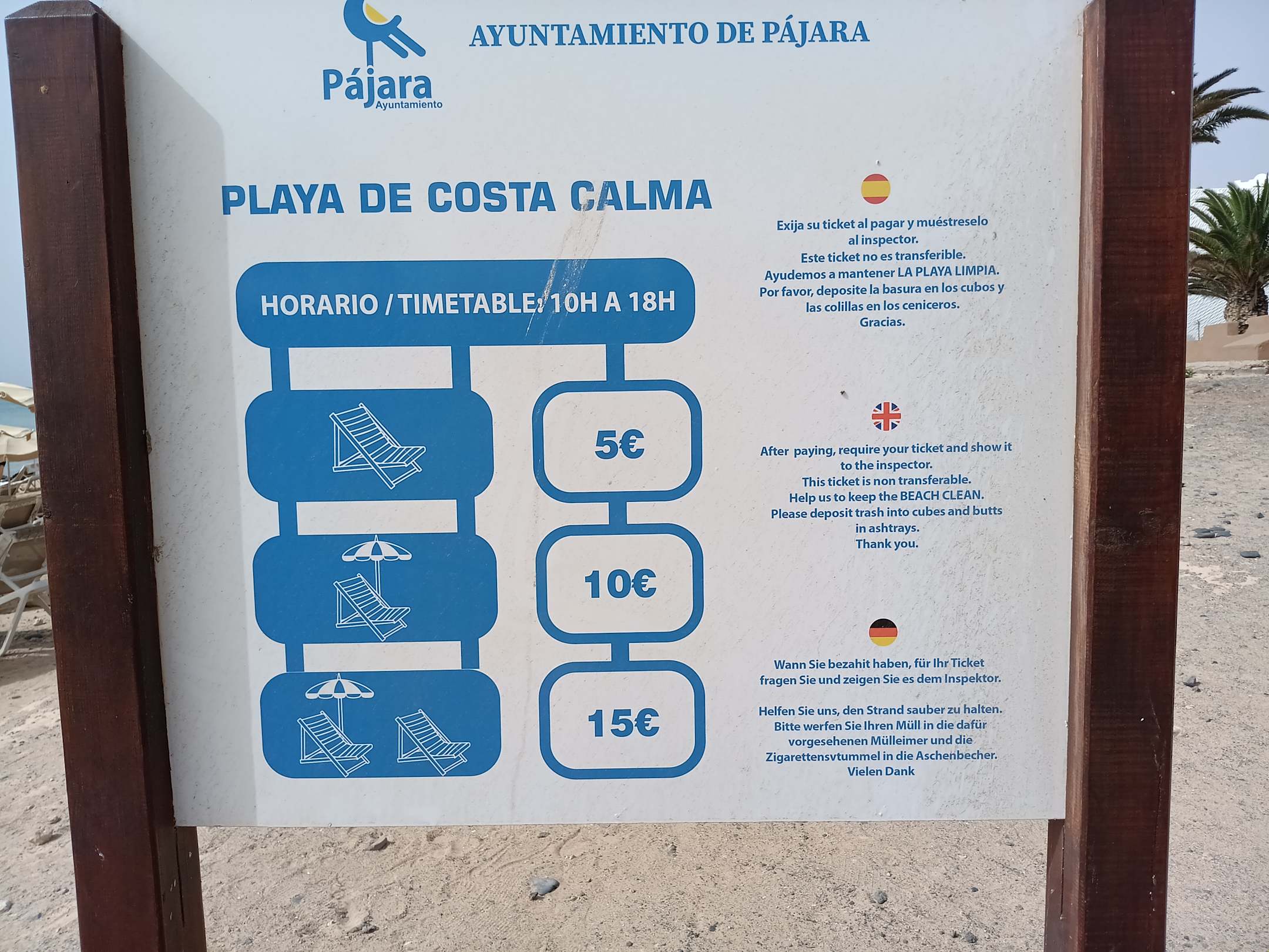 Preisliste für die Liegen