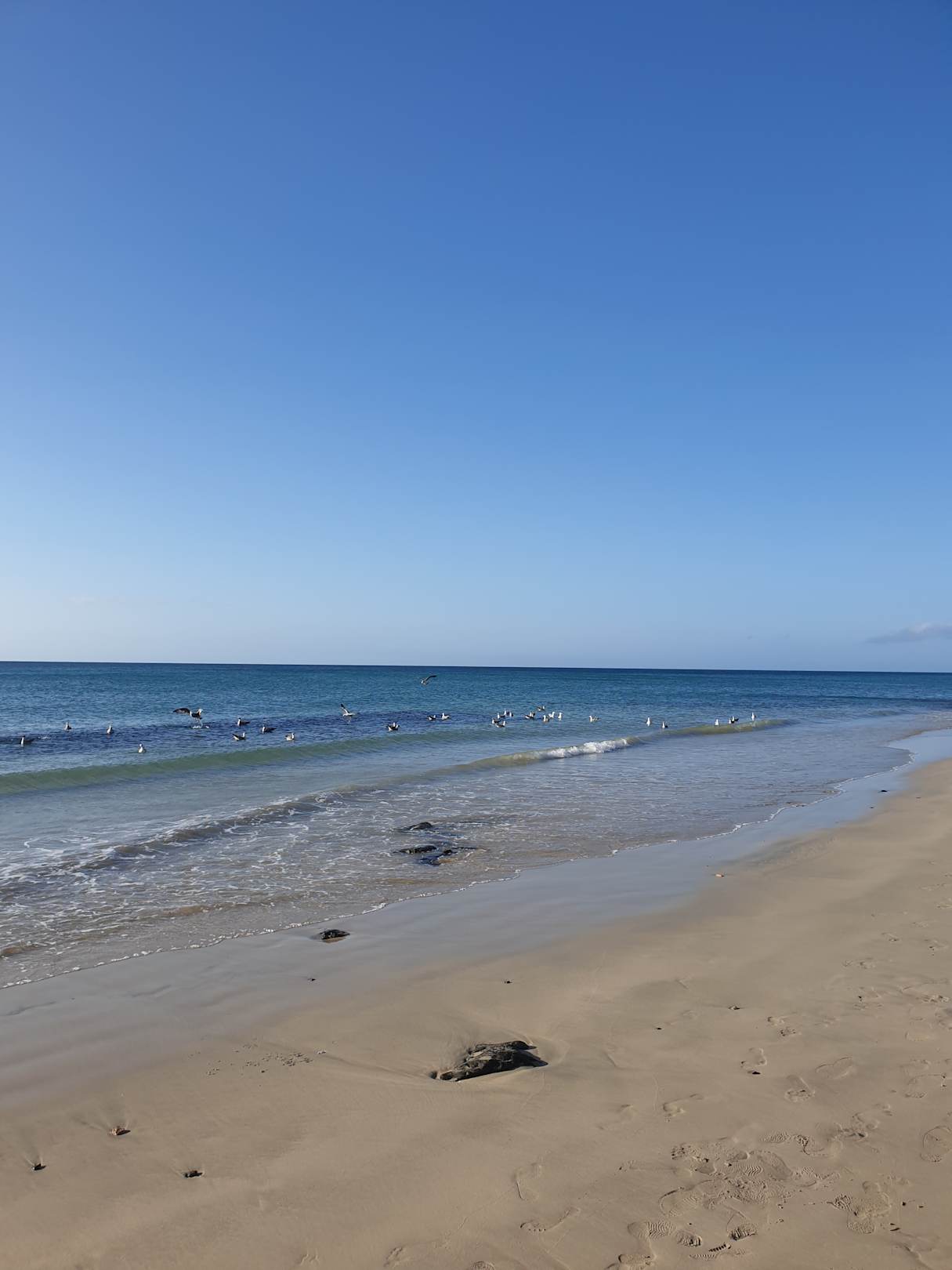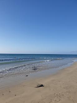 Da war noch Ebbe, leider sehr steinig der Strand. Schwer ins Wasser zu kommen